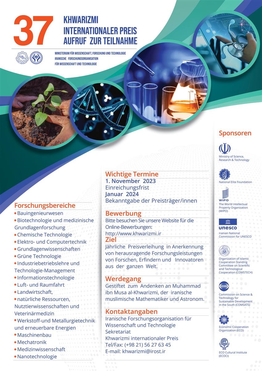 37 KHWARIZMI INTERNATIONALER PREIS AUFRUF ZUR TEILNAHME