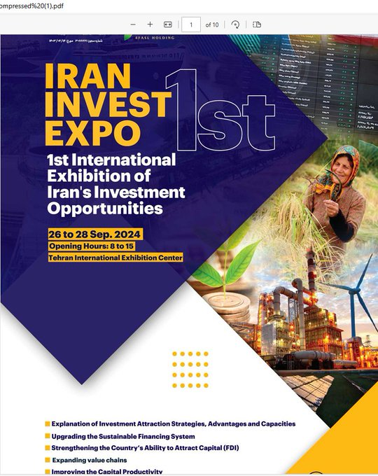 1st International Exhibition of Iran’s Investment Opportunities 26 to 28 Sep.2024 Tehran International Exhibition Center