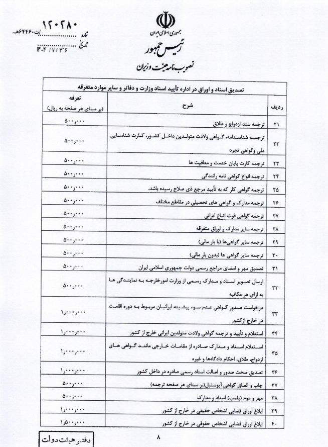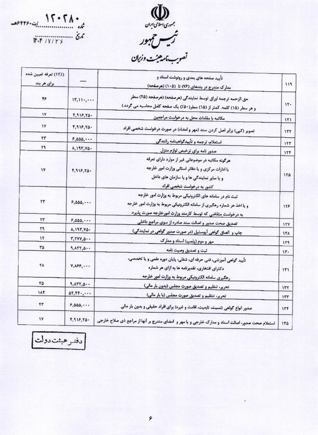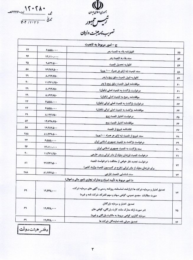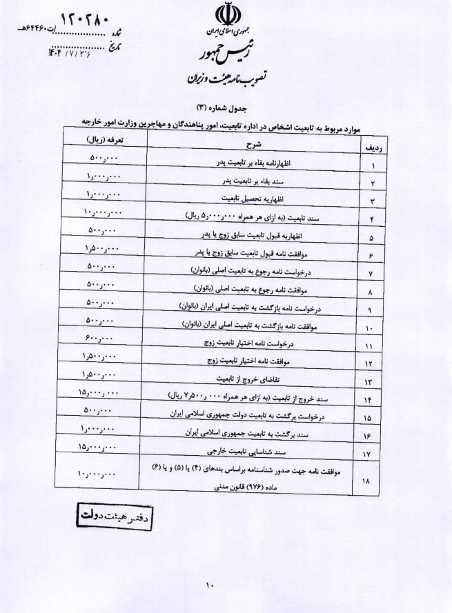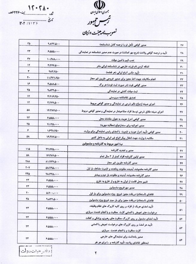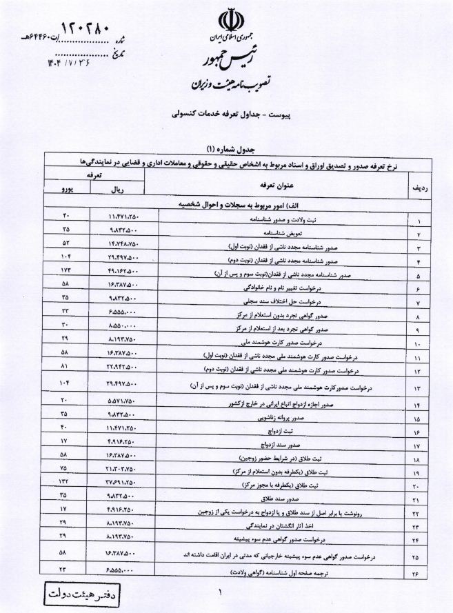 هزینه خدمات کنسولی
